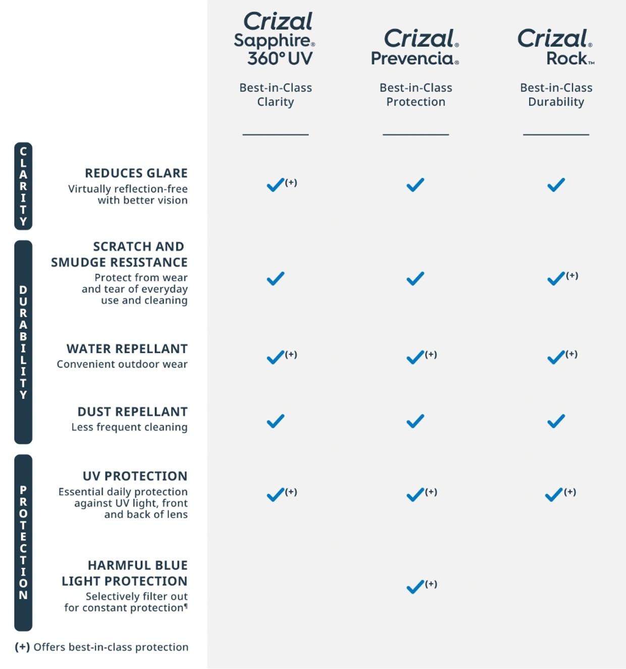 Best-in-class durability with High Resistance Technology™ for the most scratch-resistant Crizal No-Glare lens ever made, providing the best combination of scratch and smudge resistance while repelling water and dust.